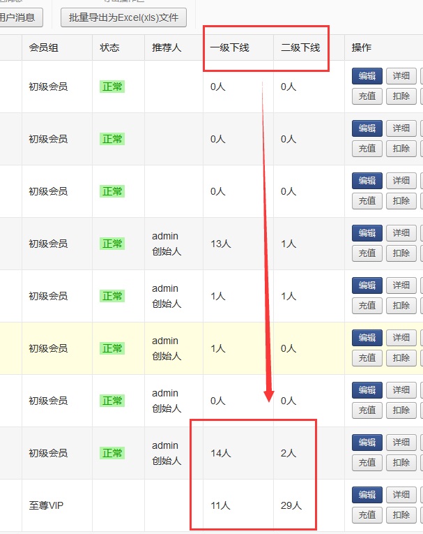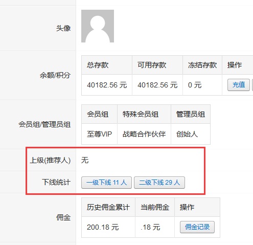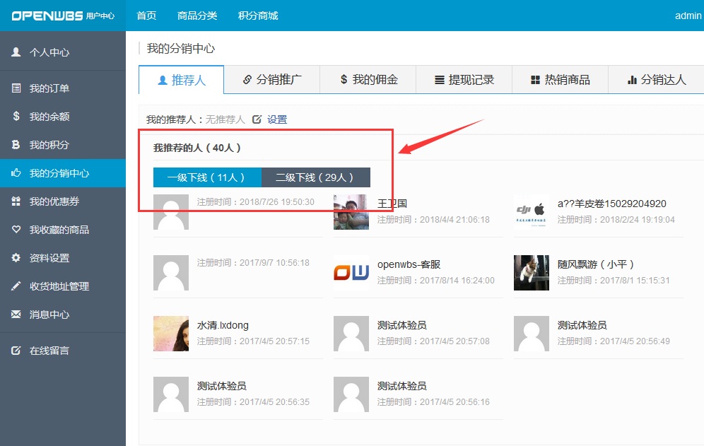 會員前臺pc端分銷下線列表和統計:
