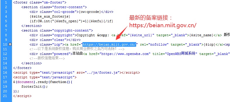 當然,最新版的openwbs程序已經是正確的工信部備案鏈接了,不用修改。