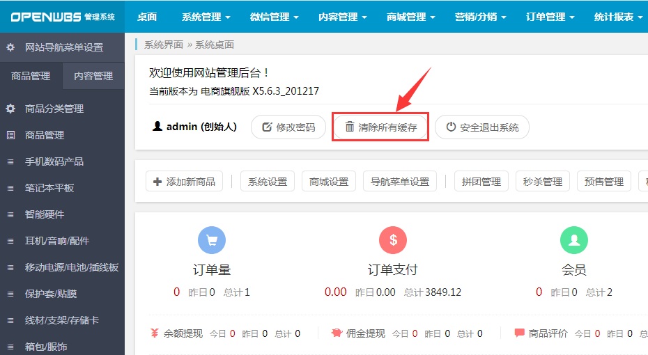 就是去【商業授權管理】下載最新的系統升級包,升級到最新的版本,然后在網站后臺【模板管理】啟用最新的v5/x5模板,然后返回后臺桌面【清除所有緩存】,完成。